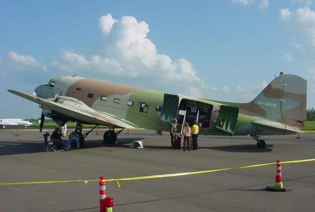 This is a full shot of a C-47 aircraft which flew into Barkley Midwest Aviation terminal outside of Paducah, KY this weekend. The crew said that it was the last original C 47 flying in the US. They call it a "flying museum." The C-47 was the workhorse of WW II - one of the great planes of aviation history.