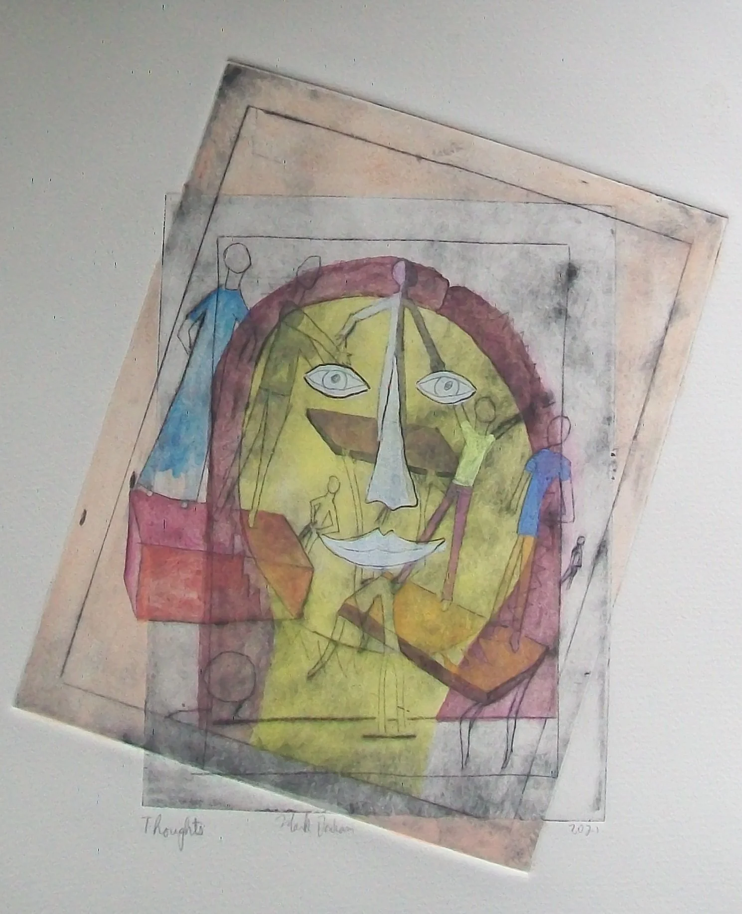 “Thoughts” (hand colored drypoint)